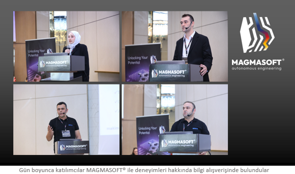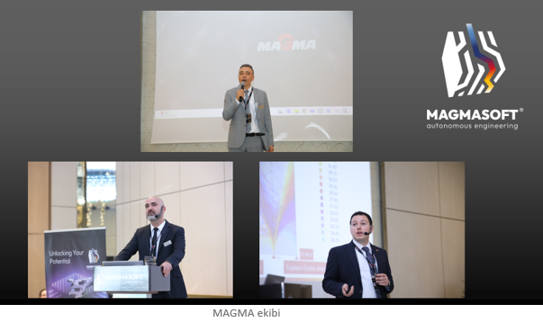 Öğleden sonraki oturumda, TUĞÇELİK-Feyzanur Şahin, PINAR DÖKÜM–Tuna Kaan Kaya ve MAKİM– Orhan Peşan & Fatih Kart sunumları ile katkıda bulundular. Devamında MAGMA Türkiye Genel Müdürü Murat Akçin MAGMASOFT® Yazılım Geliştirmeleri hakkında katılımcıları bilgilendirdi.