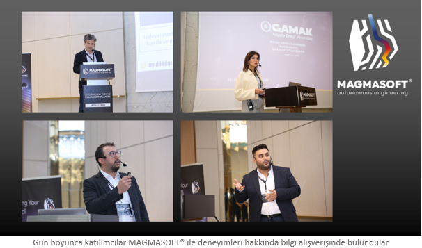 Öğleden sonraki oturumda, TUĞÇELİK-Feyzanur Şahin, PINAR DÖKÜM–Tuna Kaan Kaya ve MAKİM– Orhan Peşan & Fatih Kart sunumları ile katkıda bulundular. Devamında MAGMA Türkiye Genel Müdürü Murat Akçin MAGMASOFT® Yazılım Geliştirmeleri hakkında katılımcıları bilgilendirdi.